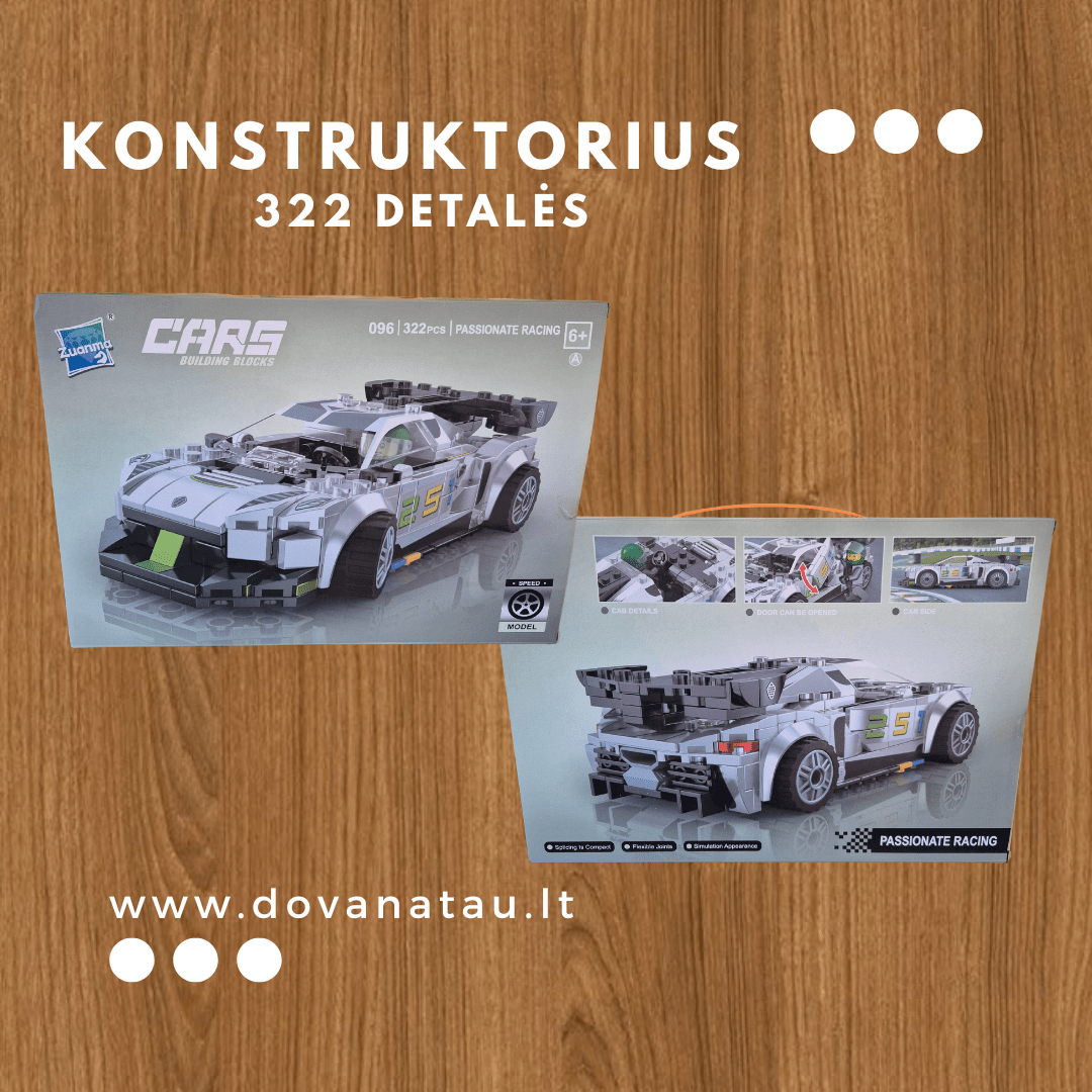 Cars building blocks - 322 detalių. Tai puiki dovana, lavinanti vaikų pirštus.