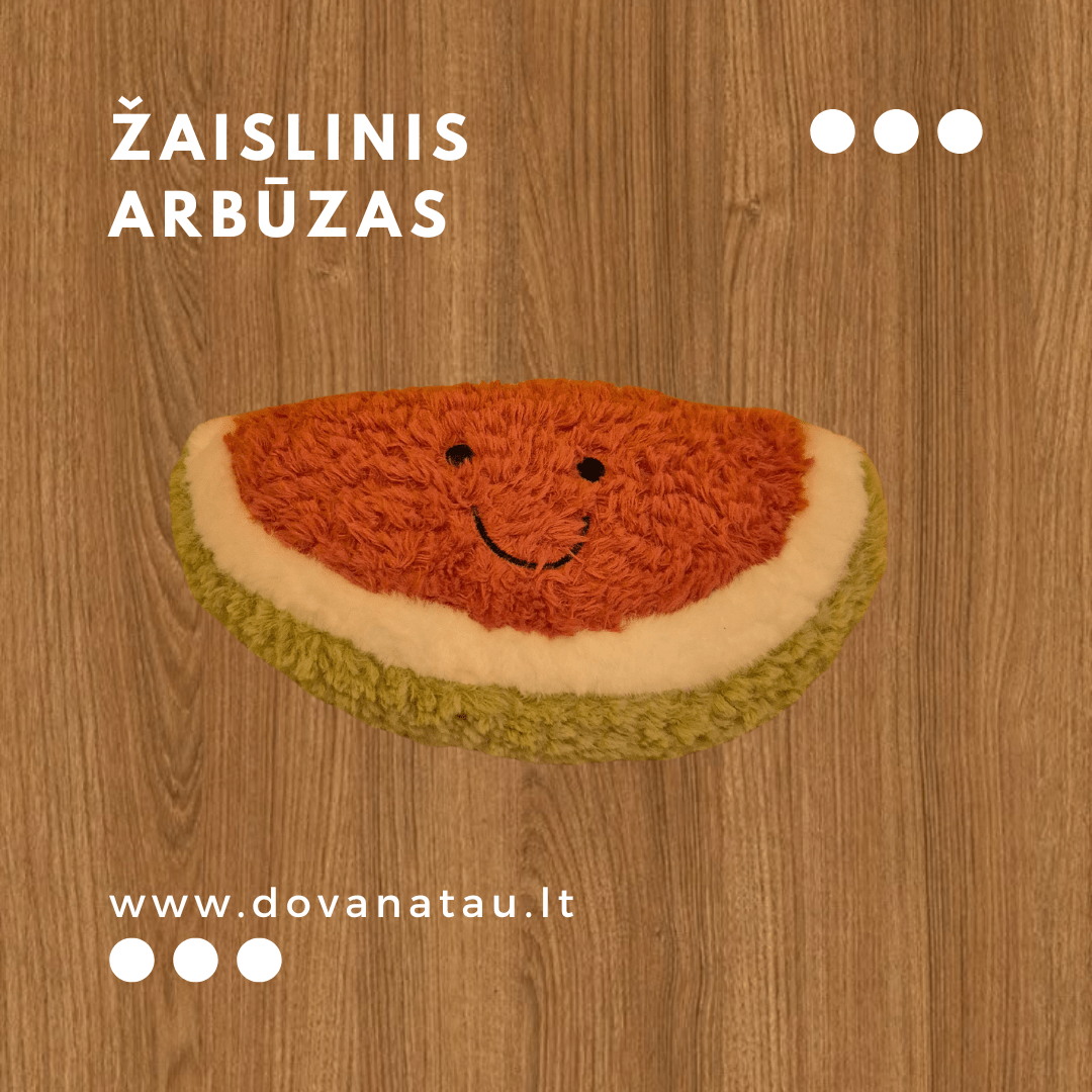 Žaislinis arbūzas su šypsena. Padovanok žaislą, kartu ir emocijas. Dydis - 13x25 cm.